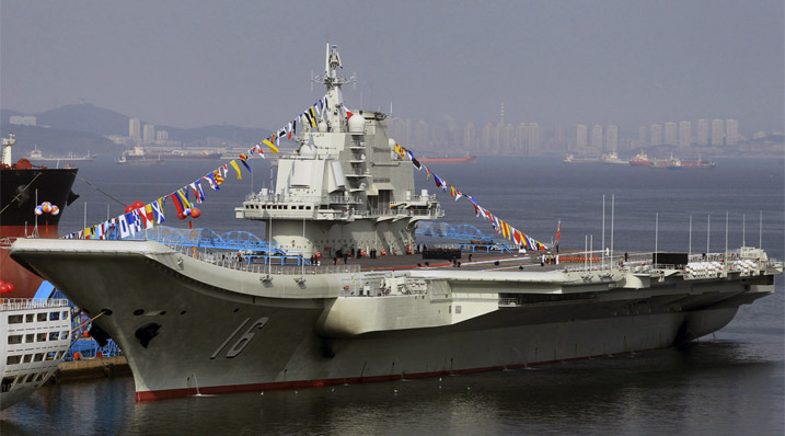 Bought from the Ukraine as a gutted hull, it was refitted in Dalian and was formally brought into service in 2012. In a show of strength it recently completed a 37-day “sea trial” in the South China Sea.