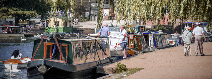 The Worcester and Birmingham Canal wanders through unspoilt countryside and dark tunnels, incorporating the longest flight of locks in the country, at Tardebigge, with a total of 30 locks. The imposing double river-lock at Diglis, in Worcester, allows boaters onto the River Severn. In spate this river can pose dangers, especially for flat bottomed boats. Upton-on Severn is a good place to stop, popular with tourists and hosting some international festivals. Turning left onto the River Avon the river becomes narrower as it meanders through idyllic countryside between the Malvern Hills and the Cotswolds, on its way to Stratford. Here tourists will have their cameras at the ready to photograph you navigating past the Royal Shakespeare Theatre and mooring up in the heart of the town.