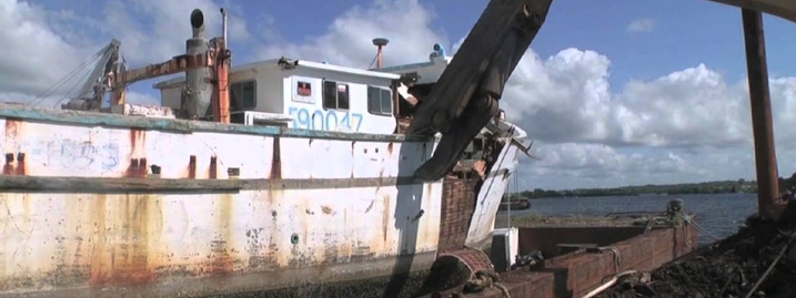 Take a firsthand look at the demolition of the Miss China, a 67-foot commercial fishing vessel, as it's torn apart by an excavator in New Bedford, Massachusetts.