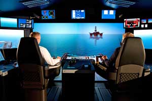 As an innovator in the world of maritime simulation, Kongsberg Maritime is a major player in offshore simulation, having delivered globally, sophisticated training solutions for ship's handling, DP, anchor handling, liquid cargo handling including LNG, tugging, crisis management, power management and propulsion, and crane operation. In close cooperation with customers, Kongsberg Maritime ensures that simulator development moves in the direction required by the offshore industry. This is reflected in ongoing development of the EMAS Academy in Singapore and the Feb 2010 completion and delivery of the world's most advanced Offshore Supply Vessel simulator, including a cutting-edge, next generation Anchor Handling Simulator to the Maersk Offshore Simulation and Innovation Centre (MOSAIC) in Svendborg, Denmark.