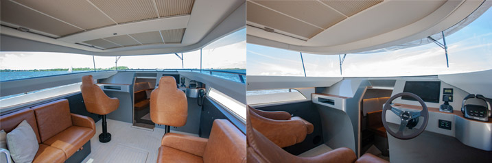 The Venegy 37 is characterized by a unique wheelhouse with a 360 degrees panoramic view (including safety glass) which ensures a maximum view. Above the steering console there is a special roof construction in which a sliding roof system has been integrated. This gives the wheelhouse a maximum amount of light and ensures that outside and inside become one.